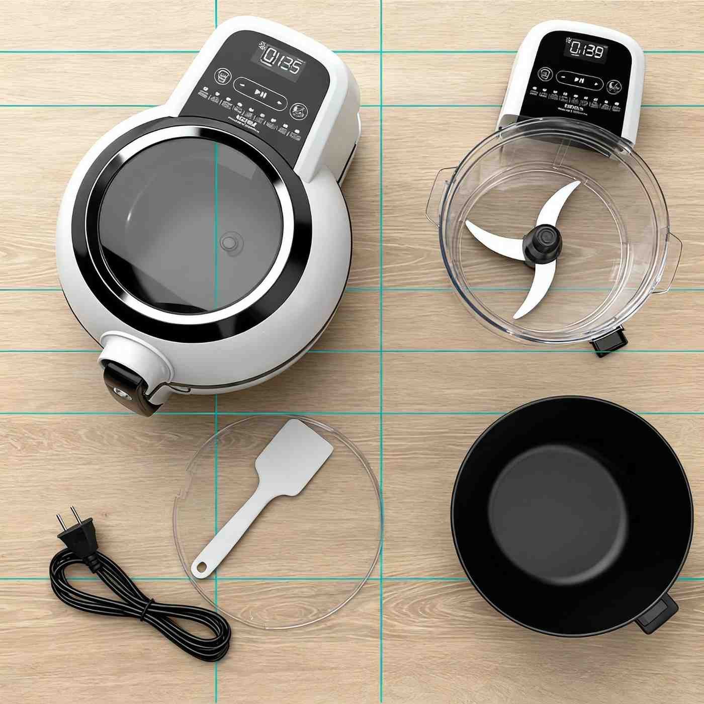 - تقوم الشفرة الداخلية بتقليب الطعام وتوزيع الزيت تلقائيًا.